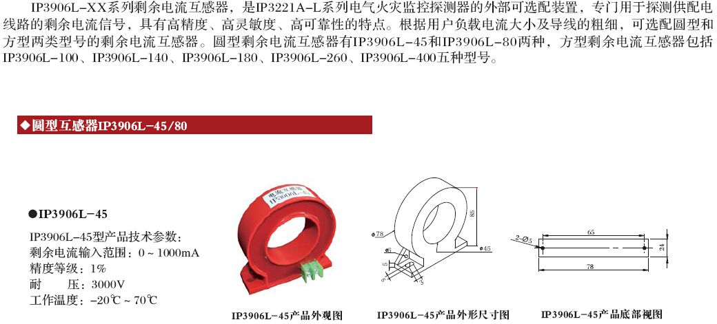 IP3906L系列剩余電流互感器