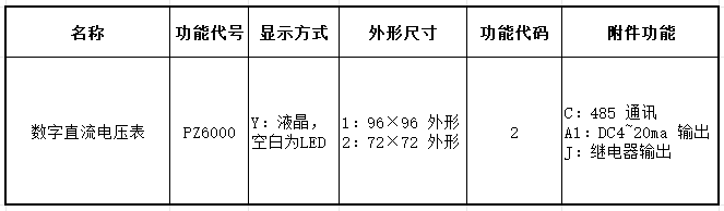 例如:1:PD6000-26D-CA1:96 外形直流電流電壓功能,帶通訊,帶 4~20mA 輸出