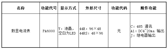 例如:1:PD6000-26D-CA1:96 外形直流電流電壓功能,帶通訊,帶 4~20mA 輸出